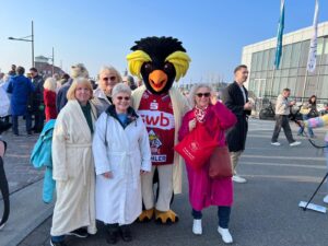 Am Deich in Bremerhaven trafen wir uns zu einem besonderen Fotomoment. Gemeinsam mit den Fischtown Pinguins und den Eisbären Bremerhaven entstand ein Bild, das mehr ist als nur eine Momentaufnahme. In unseren Bademänteln wollten wir zeigen: Wir denken an die Menschen, die mit Demenz leben – und an ihre Angehörigen.